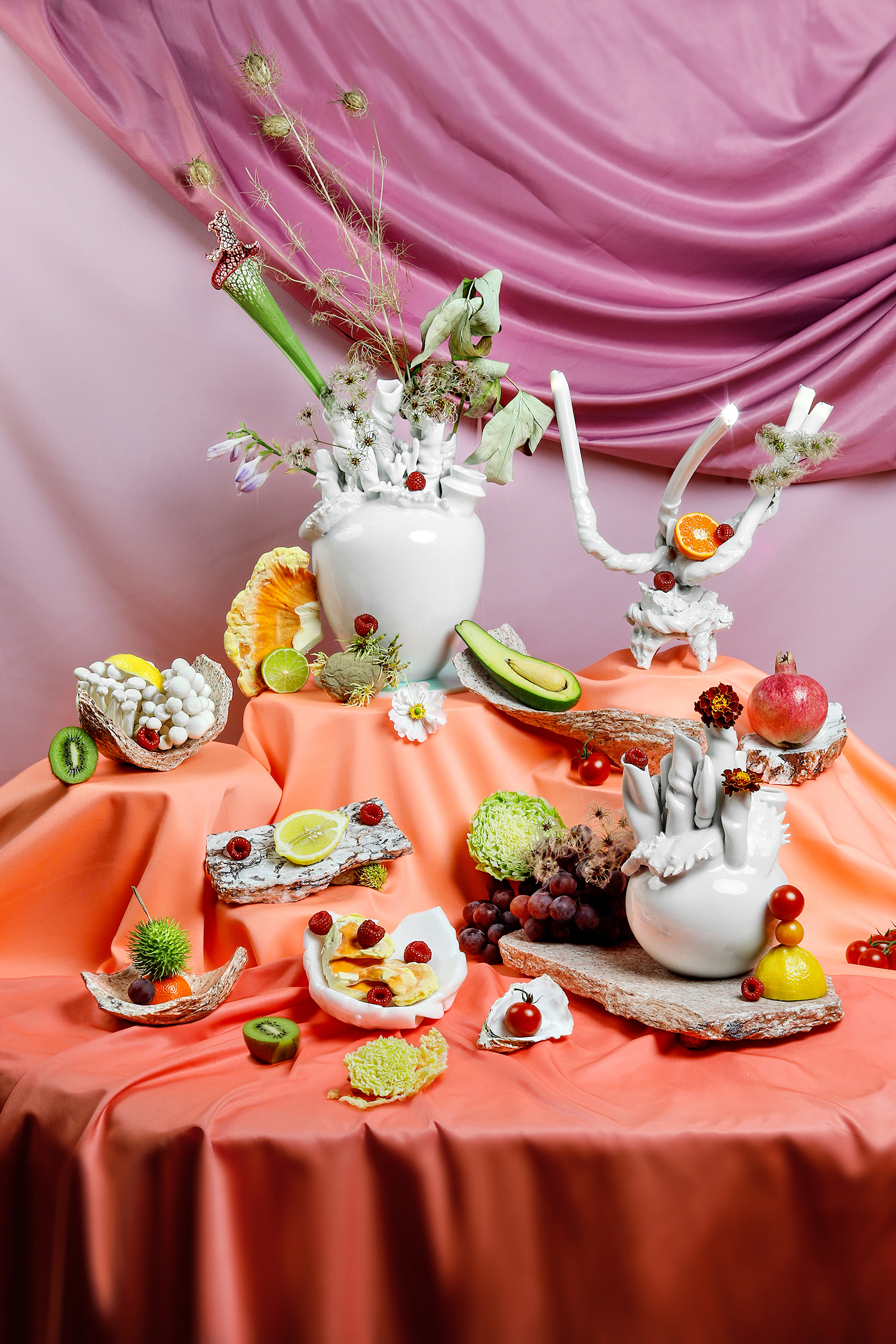 Pohostěte se spolu s autory přímo v instalaci. Diskutujme mezi kamennými mísami, roztavenými porcelánovými svícny a dalšími díly, které překračují hranice mezi designem a uměním.