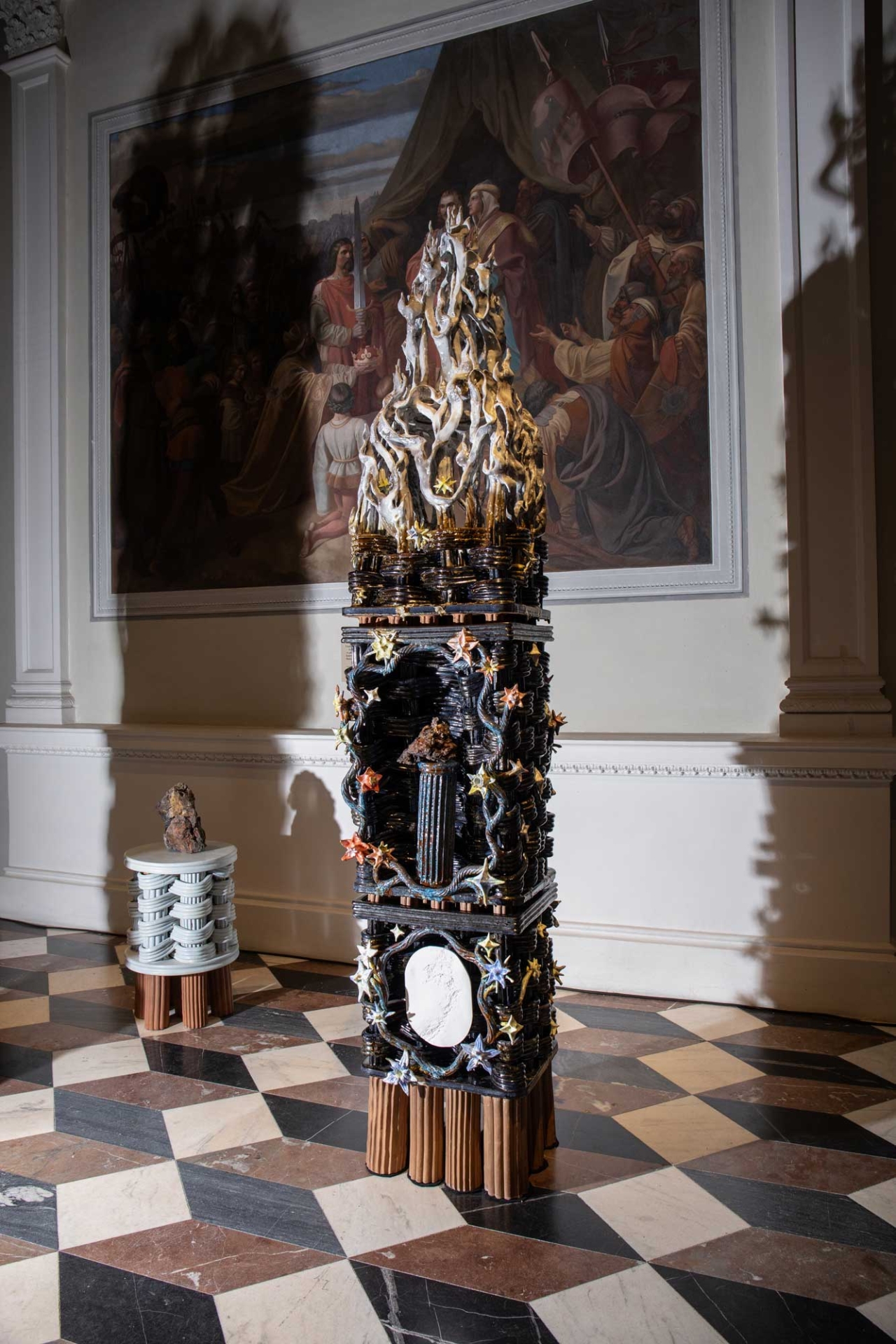 avšak velmi efektní a přímo reaguje na interiér Královského letohrádku Pražského hradu.
