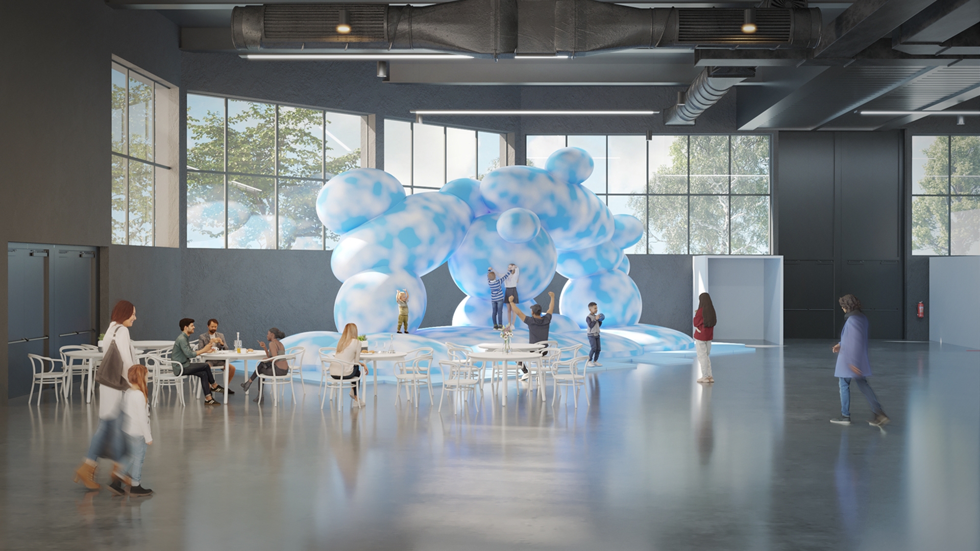 „Mrak je symbolem představivosti. Skákací MRAK vyjadřuje svobodu i sny a vyzývá děti, aby se uvolnily a užily si společně radost z pohybu. Zatímco se rodiče občerstvují a pozorují krajinu českého designu, jejich děti skáčou po mracích,“ říká o své instalaci Maxim Velčovský.
