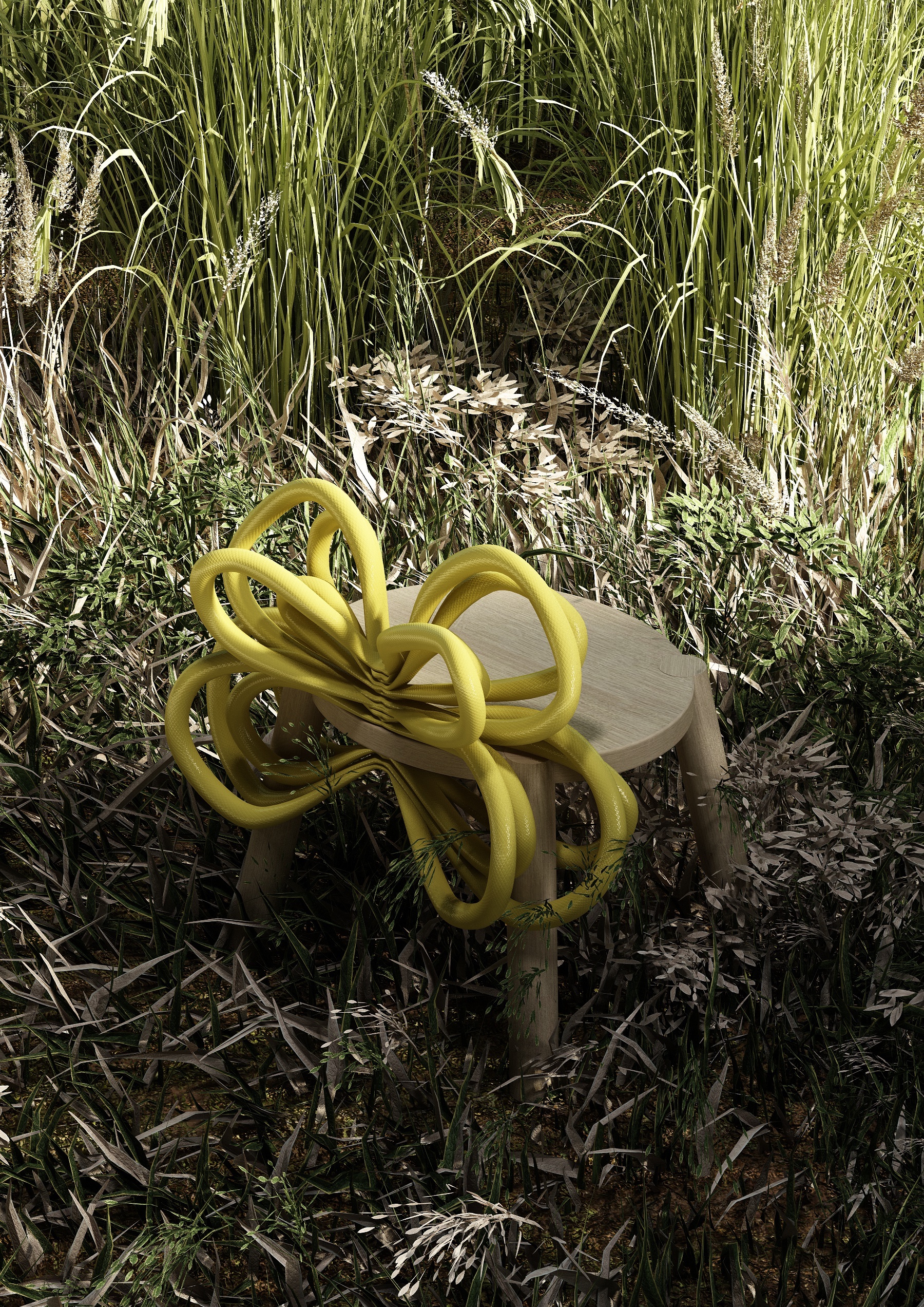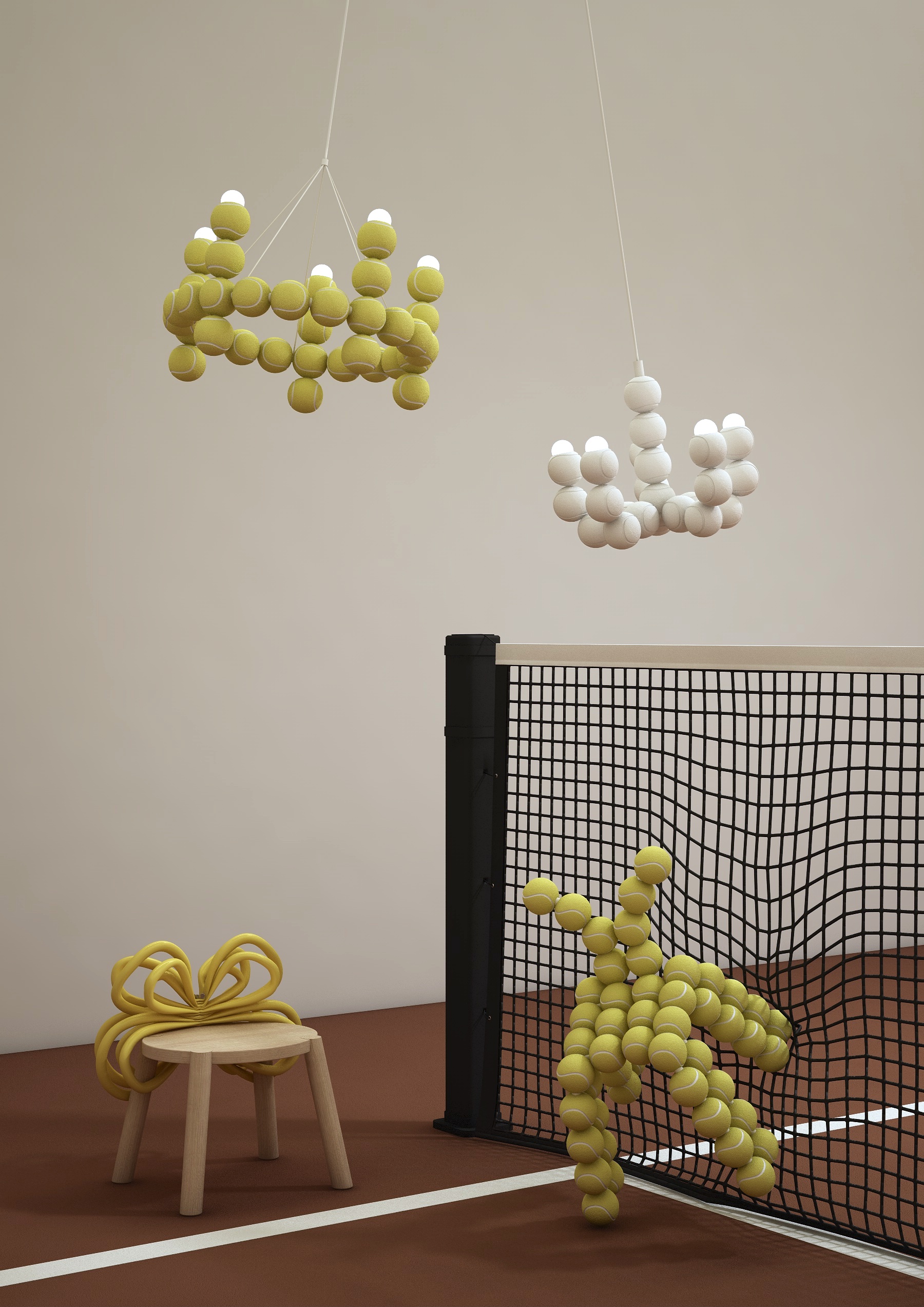 LUKRU design is a brand by designer Lucia Kružlicová, merging aesthetics, function, and emotion. Her latest collection, TENNIS, transforms old tennis balls and garden hoses into playful children’s furniture and lighting. The collection blends creativity with sustainability, giving recycled materials new meaning and form.