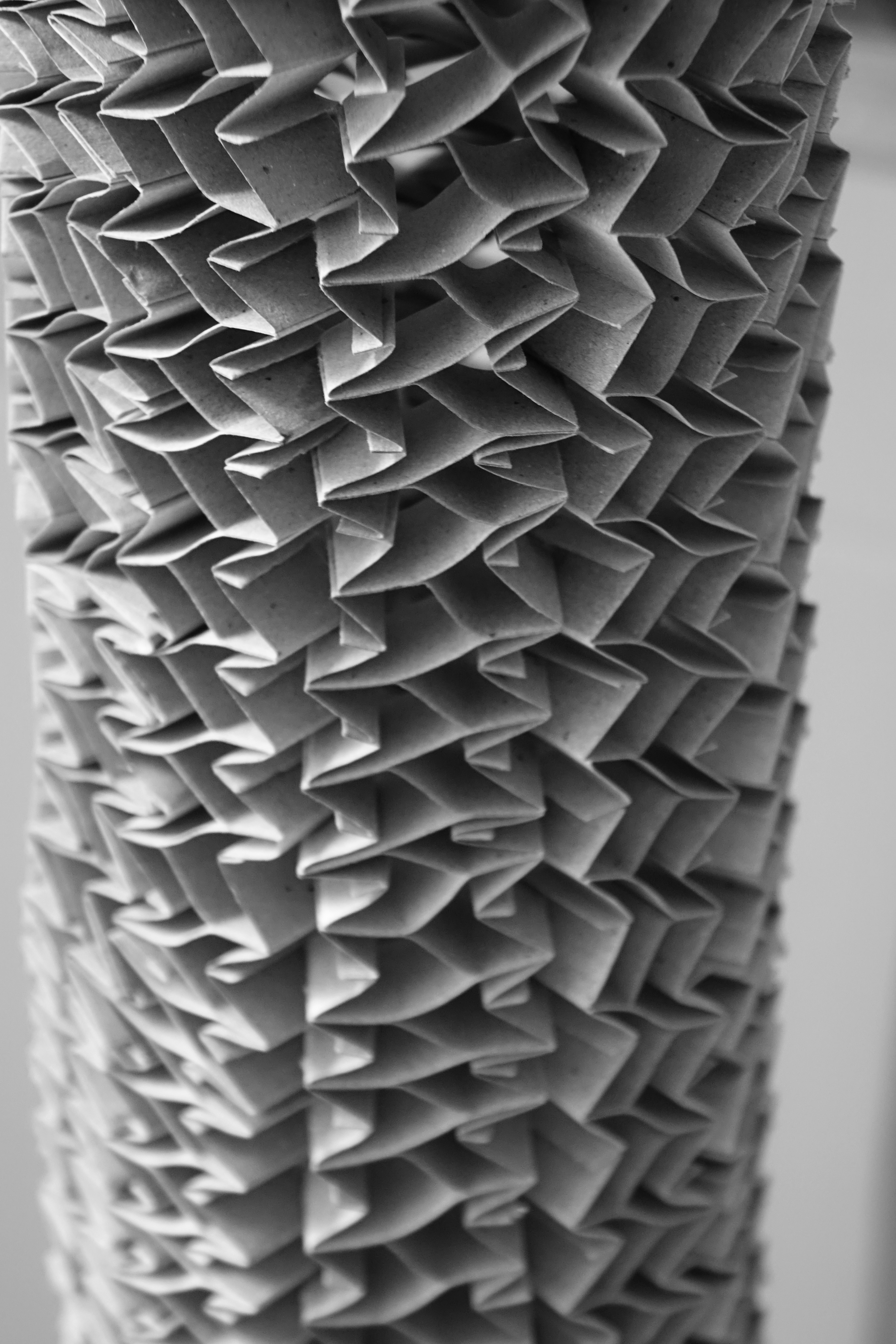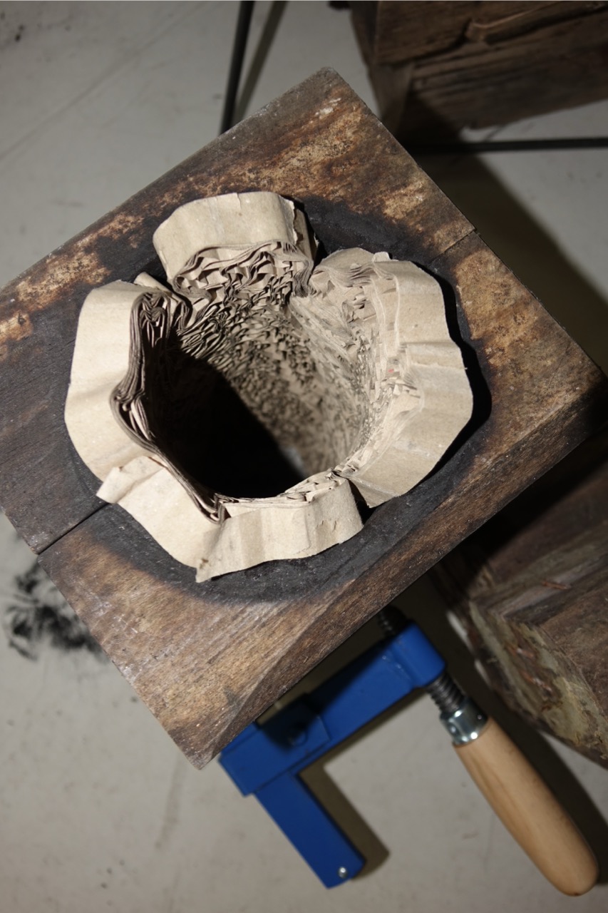 Hana Vopravilová hovers between design and fine art objects. Her glass vessels are a record of a controlled experiment with paper and glass. Now, it is the paper honeycomb which takes the main role, becoming a disposable optical mold of many forms, challenging the glass to be detailed. The objects are, above all, a space for exploration — not only for Hana herself but also for the spectator.